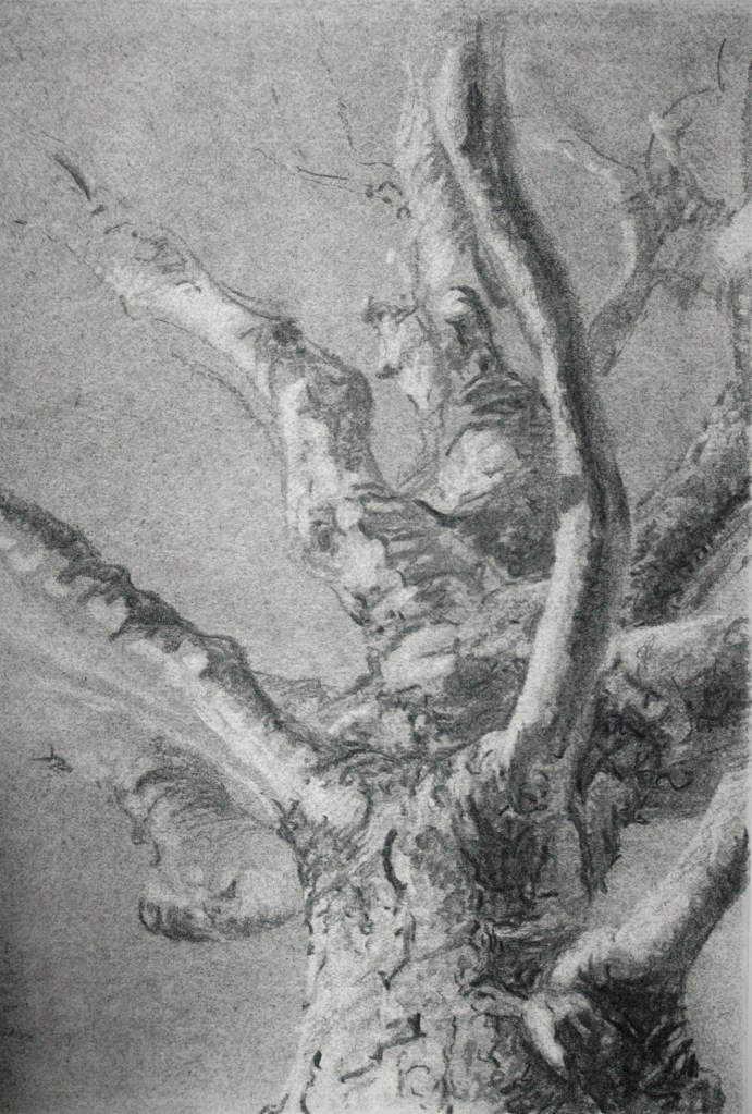 These tree drawings began during my first grey and cold winter in London England in 2009. I went to visit Birgit in the UK, just six months after we met in Venice Italy, to give this international romance a try. Being the young that artist she was at the time, Birgit was living as a “guardian” without tenancy rights, meaning she was not permitted have unattended guests in her apartment. (But the benefit was that her rent was incredibly low.) Long story short: I couldn’t stay at her place during the day while she was away studying on her postgraduate program at Goldsmiths University.
