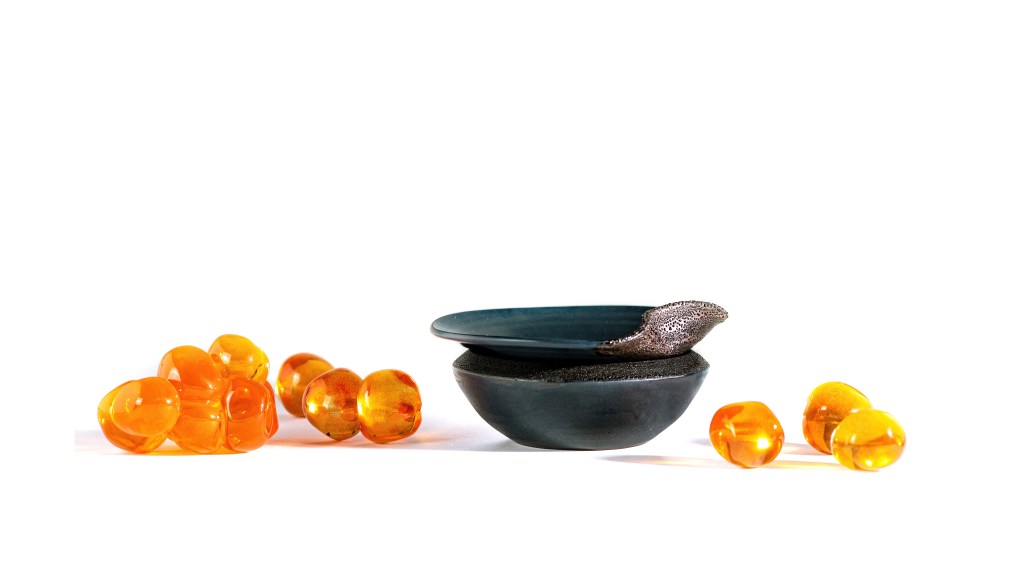 During our first meeting Erin and Jason shared project concepts and work samples with one another and; on seeing a particularly nice glaze on one of Erin’s pieces; simultaneously had the idea to create glass caviar to harmonize with / accompany Erin’s glazed Caviar serving dishes.