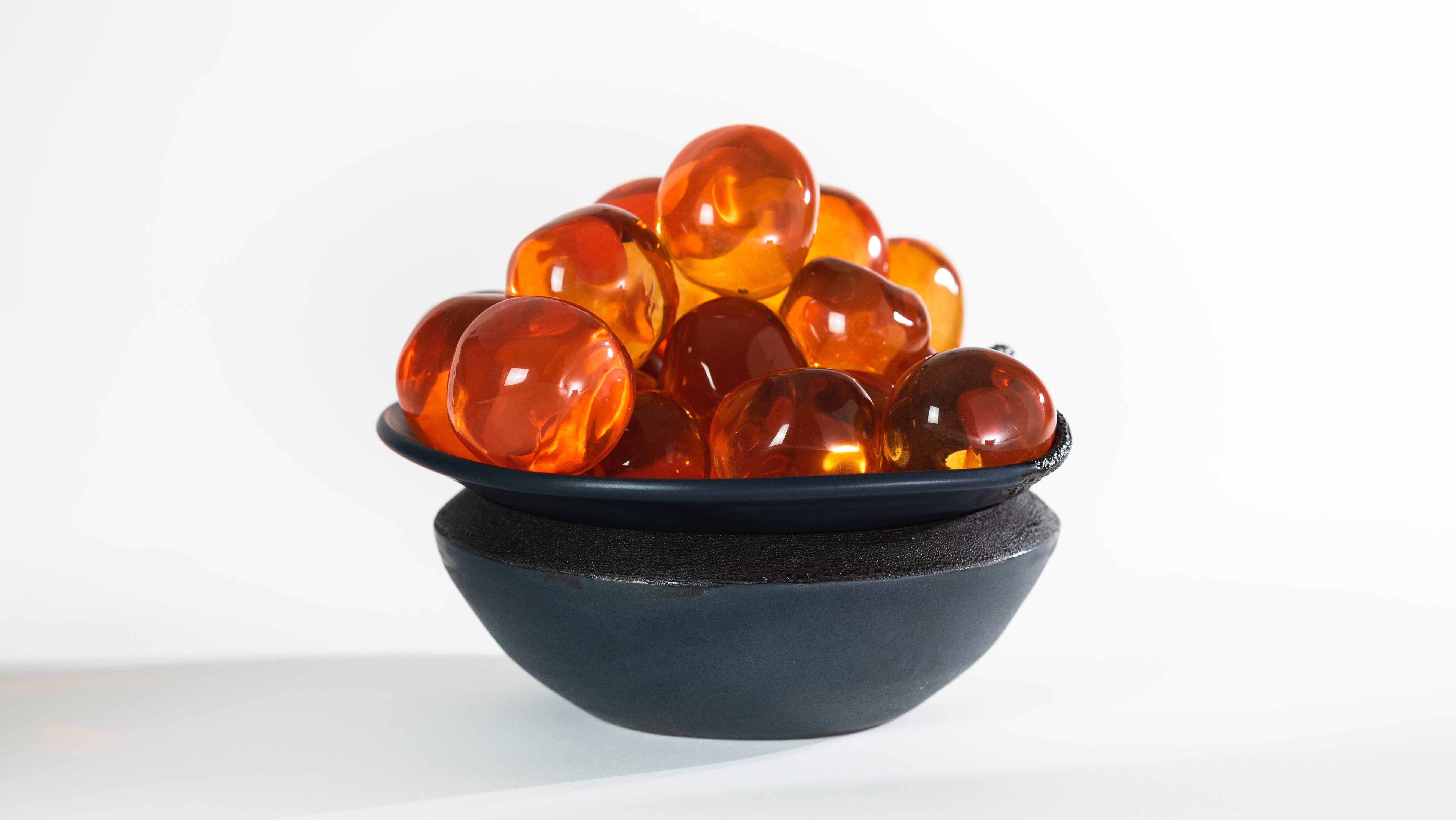 Larger than life, solid glass sculpted caviar eggs, by Jason Stropko Glass. / überdimensionale Glasskunst